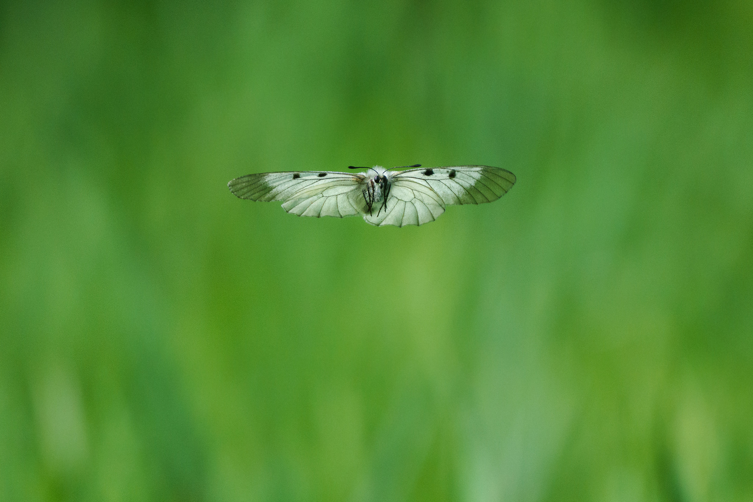 Makroaufnahmen müssen nicht immer ein stillstehendes Motiv zeigen. Als Tierfotograf bin ich es gewohnt, Vögel im Flug zu fotografieren, und mit diesem Objektiv gelingt mir genau das auch bei Insekten. Für eine Fotoserie habe ich mit DMF (Direct Manual Focus) vorab auf eine schwebende Fliege fokussiert. Die Fliege bewegte sich und ich konnte sie im Flug fotografieren. Die Leistung der Sony Alpha 1 half mir bei der Aufnahme. Mit dieser Kamera kann ich schnell fokussieren, selbst wenn ich den 2-fach-Telekonverter verwende und mit 30 Bildern pro Sekunde fotografiere. Sie leistet hervorragende Arbeit.