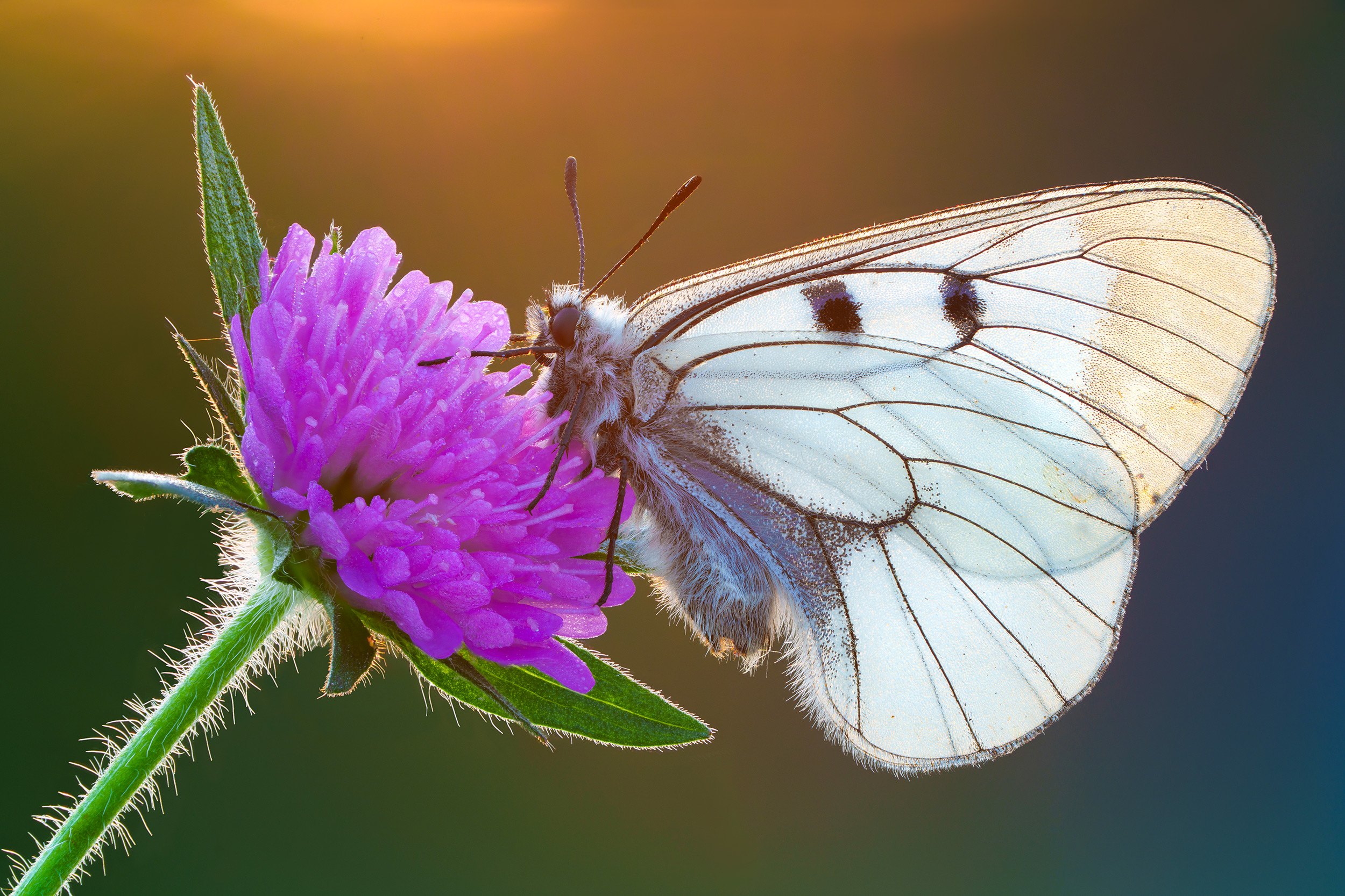 Ich liebe es, mit dem Sony FE 70-200mm F/4 Macro G OSS II Objektiv Makrofotografien von Insekten anzufertigen, besonders von Schmetterlingen und Faltern. Der Trick dabei ist es, frühmorgens aufzubrechen und die Insekten zu fotografieren, ehe sie erwachen. Ich komme in aller Regel noch vor Sonnenaufgang am Schauplatz an, halte Ausschau nach Stellen, an denen sich die Tiere sonnen, und rüste mich dann für das Morgenlicht. Der Morgen ist die kälteste Tageszeit und damit ideal für Fotos, da sich die Insekten noch im Ruhezustand befinden.