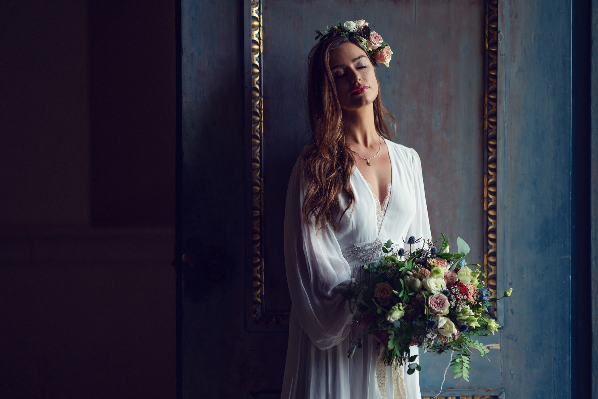 braut mit geschlossenen augen lehnt an einer wand © Kate Kirkman | Sony α9 + FE 85mm f/1.4 GM | 1/400s @ f/1.8, ISO 200