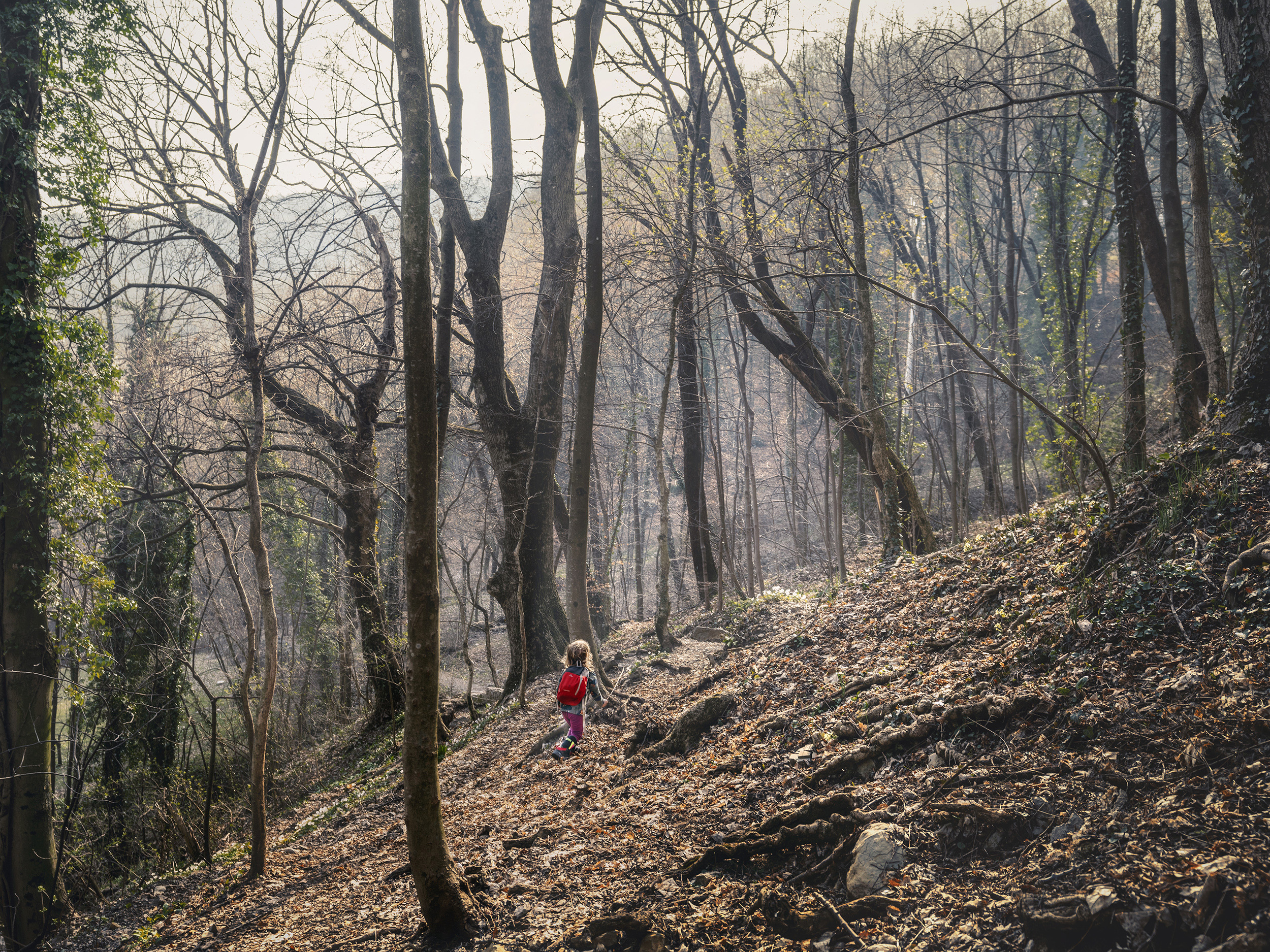 Als Vater wusste Andrea, dass er etwas tun musste. Er musste seinem Sohn helfen, sich mit der Natur zu verbinden und hoffentlich selbst Freude in ihr zu finden. Glücklicherweise gelang ihm das relativ schnell – und Andrea bekam die Gelegenheit, seine fotografischen Fähigkeiten für etwas Schönes zum Einsatz zu bringen. „Alle Schulen waren noch geschlossen, also begannen wir, über eine Alternative nachzudenken“, erinnert er sich. „Wir stießen auf das Konzept des ‚natürlichen Lernens‘ – Vorschulen, die Kinder dazu ermutigen, in der freien Natur statt im Klassenzimmer zu lernen. Mein Sohn besuchte eine davon im Umland von Mailand – und ich war sofort von allem begeistert: wie die Kinder sich in der Natur bewegten, ihren Erfahrungen und der visuellen Wirkung des Ganzen.“