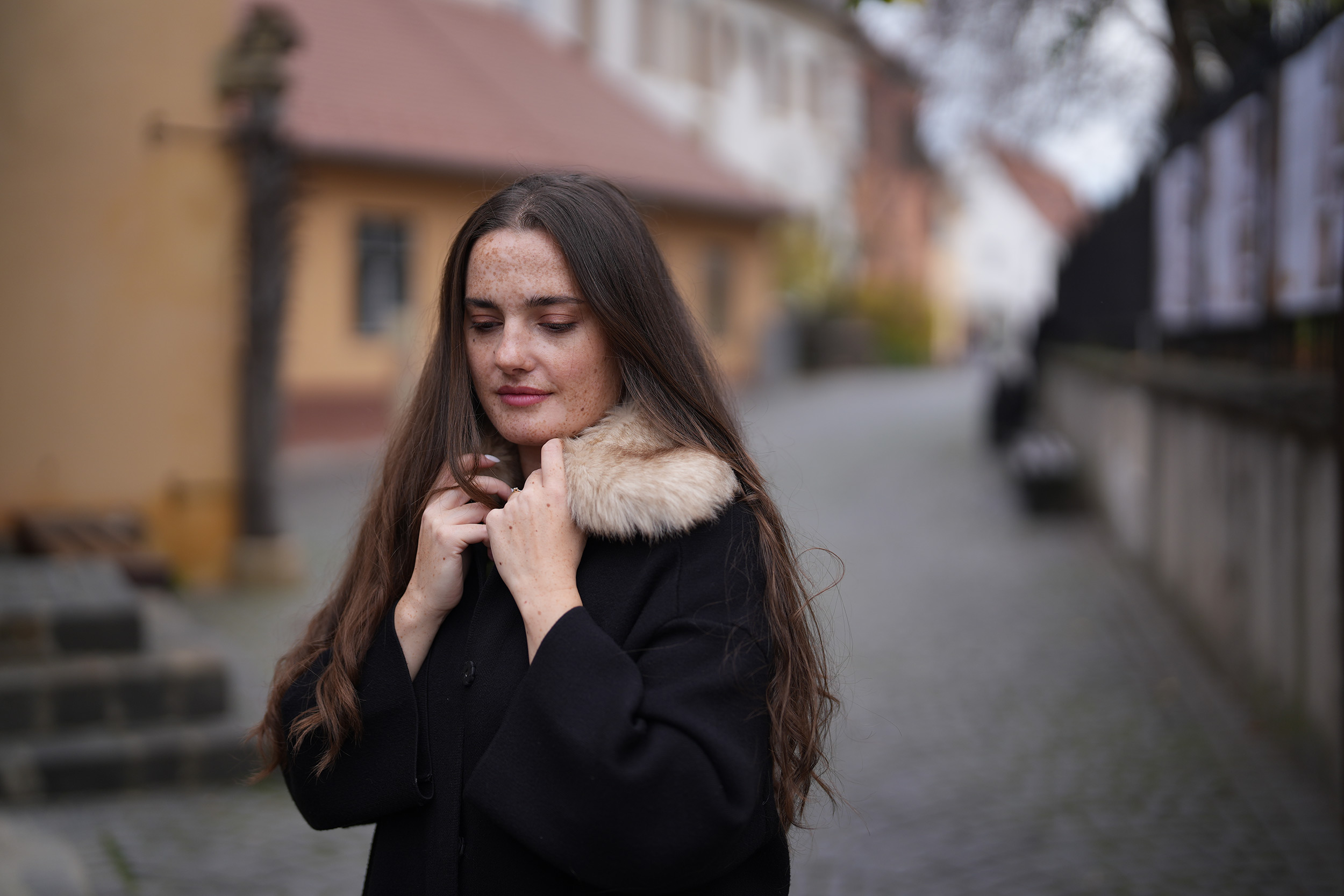 Mein Name ist Mihaela Noroc und seit 12 Jahren reise ich um die Welt, fotografiere Frauen und höre mir ihre unglaublichen Geschichten an. Ich habe meinem Projekt den Titel „Atlas der Schönheit“ gegeben, und mit der Zeit wurde es zu einer der bekanntesten Fotoinitiativen der Welt. Für das Projekt bin ich in mehr als 100 Länder gereist, habe Tausende von Frauen fotografiert und drei Bücher mit meinen Arbeiten veröffentlicht. Und um jetzt die neue Sony α 7 V auszuprobieren, bin ich durch meine wunderschöne Heimatstadt Sibiu in Rumänien gelaufen und habe dabei zwei erstaunliche Frauen fotografiert.