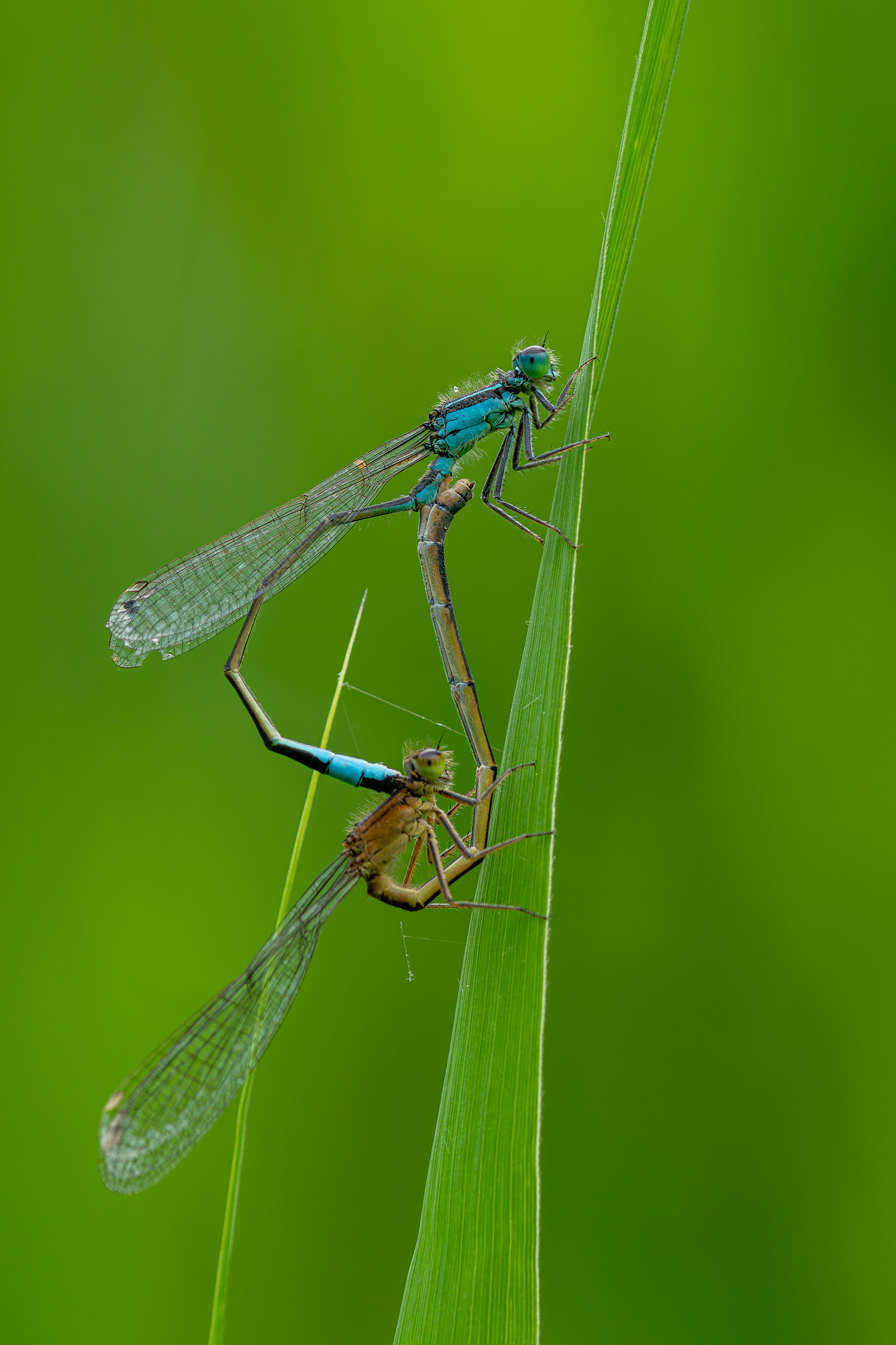 zwei libellen auf einem blatt © Kyle van Bavel | Sony α7R V + FE 70-200mm f/4 Macro G OSS II + 2x Teleconverter | 1/320s @ f/8.0, ISO 400