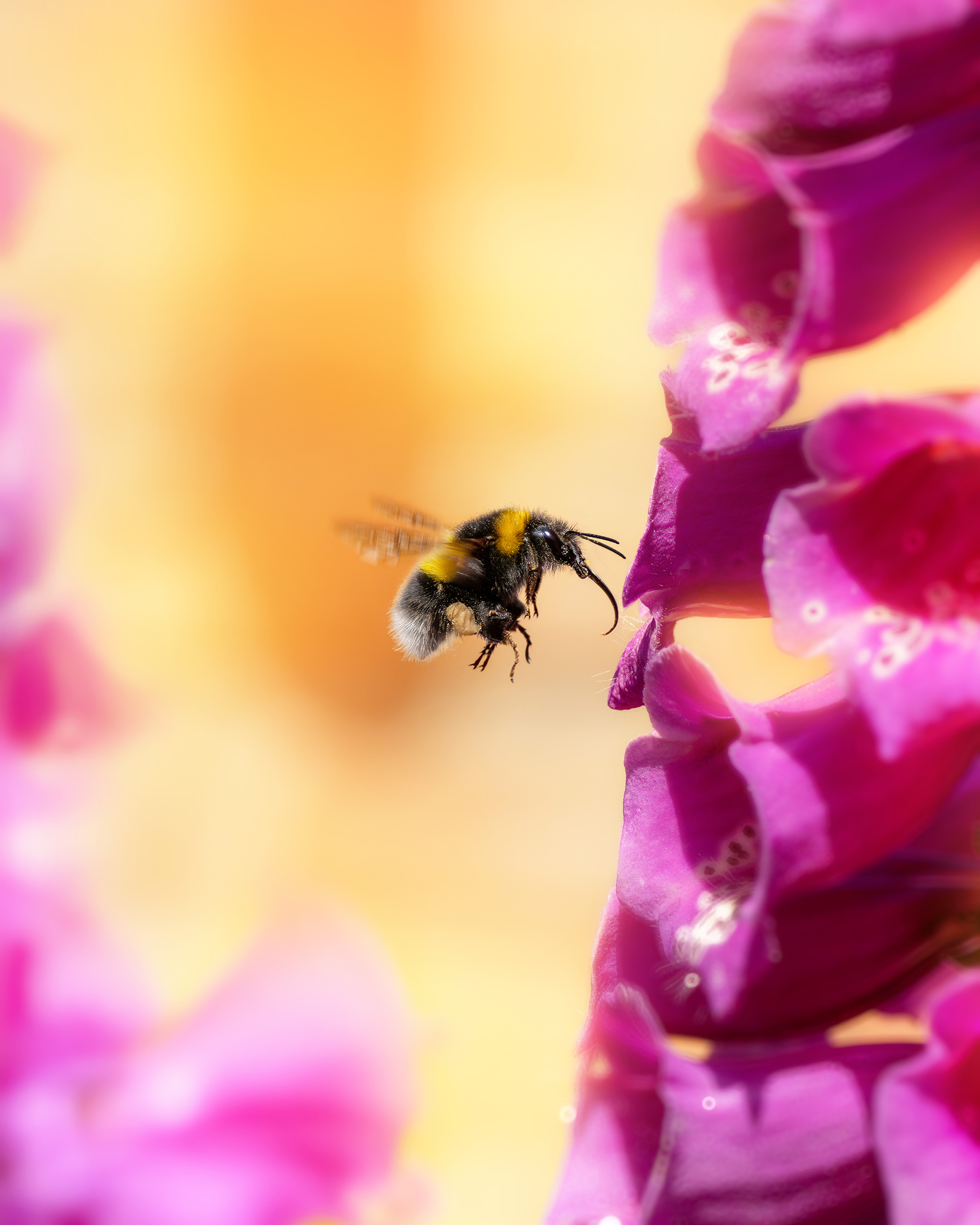 biene im landeanflug auf eine blüte © Kyle van Bavel | Sony α7R V + FE 70-200mm f/4 Macro G OSS II + 2x Teleconverter | 1/800s @ f/8.0, ISO 500