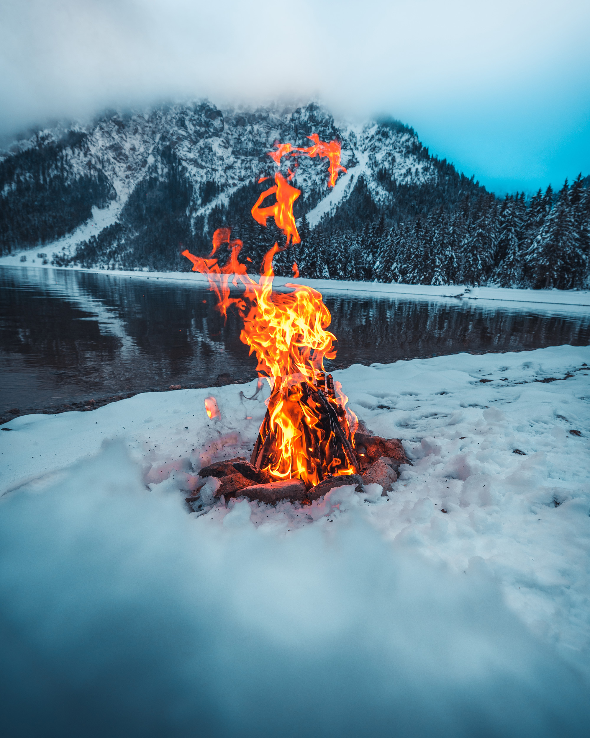 Auf einem Kurztrip nach Österreich sind ihm dabei großartige Aufnahmen gelungen, zum Beispiel von einem Lagerfeuer am Rande des Plansees. „Feuer zu fotografieren ist immer einer Herausforderung. Die Flammen bewegen sich schnell, deren Richtung und Größe ändert sich oft, je nachdem, woher gerade ein Windstoß kommt.“, erklärt Marcel. „Der superschnelle Autofokus in Kombination mit dem 33MP Bildsensor der Alpha 7 IV kann da mal so richtig zeigen, was er kann. Die Bilder sprechen auf jeden Fall für sich!“