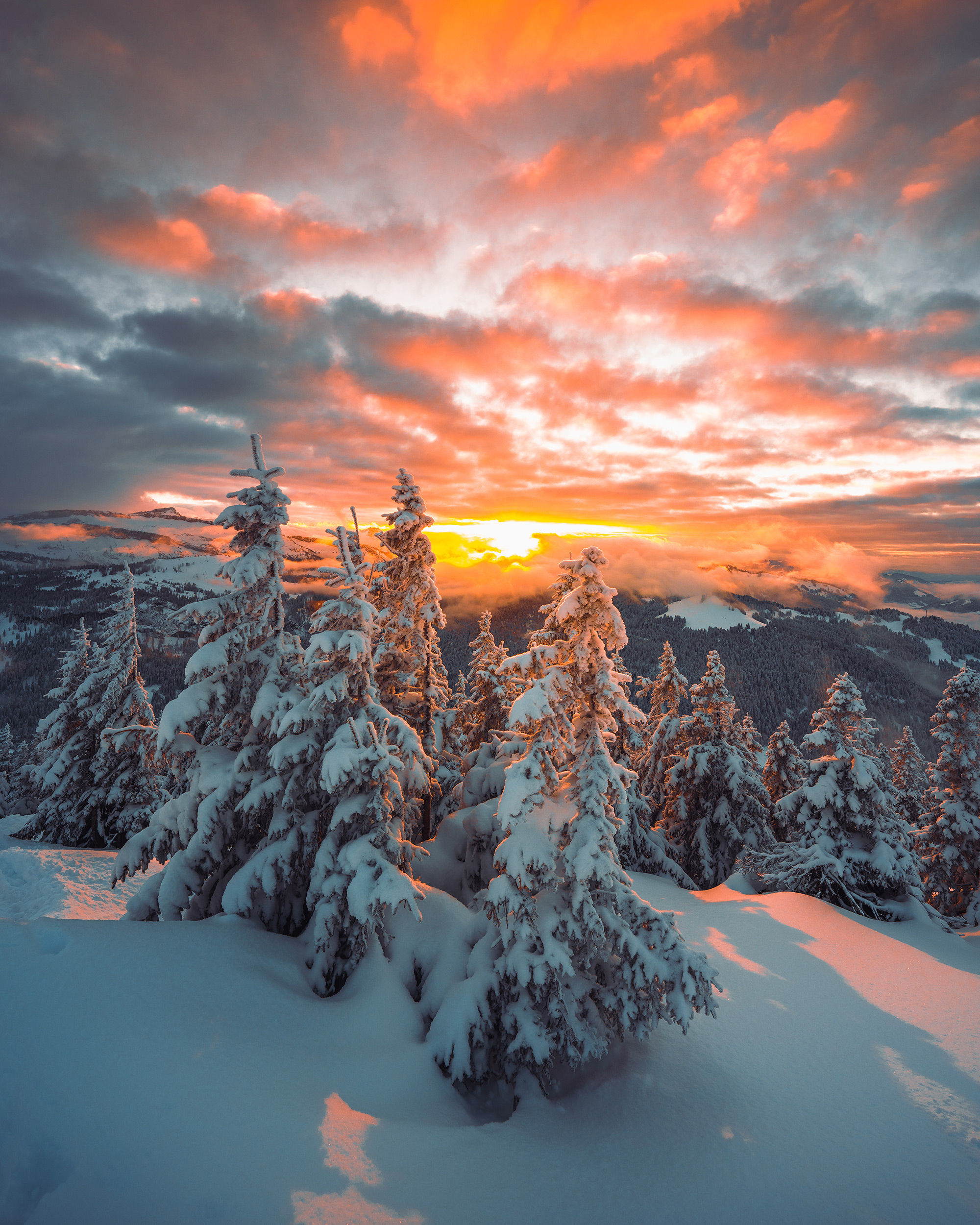 Schneebedeckte Landschaft, so weit das Auge reicht – dafür muss man unter Umständen gar nicht weit weg. Zumindest nicht, wenn man, so wie Fotograf Marcel Siebert, im Allgäu wohnt. „Die Berge hier so direkt vor der Haustür zu haben ist absoluter Luxus. Ich bin hier aufgewachsen und habe viel Zeit in der Natur, in den Bergen verbracht. Für so einem Sonnenuntergang über den Berggipfeln oder den verschneiten Bäumen kann ich mich einfach immer begeistern.“