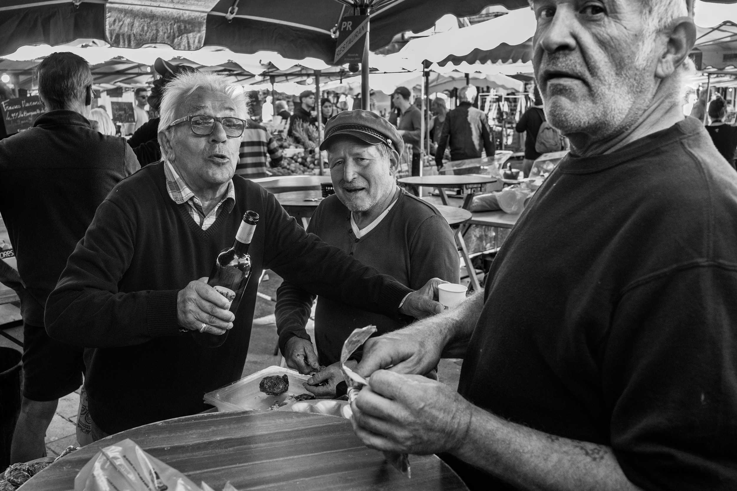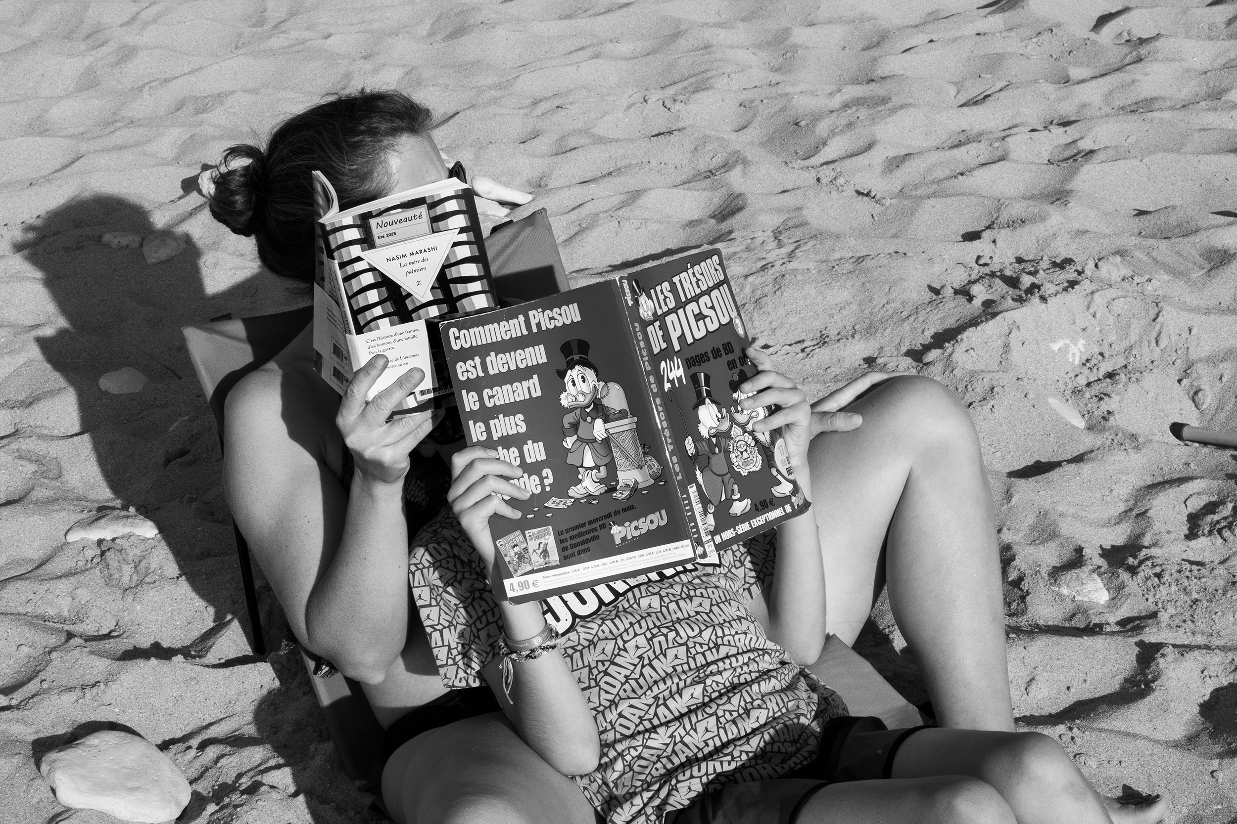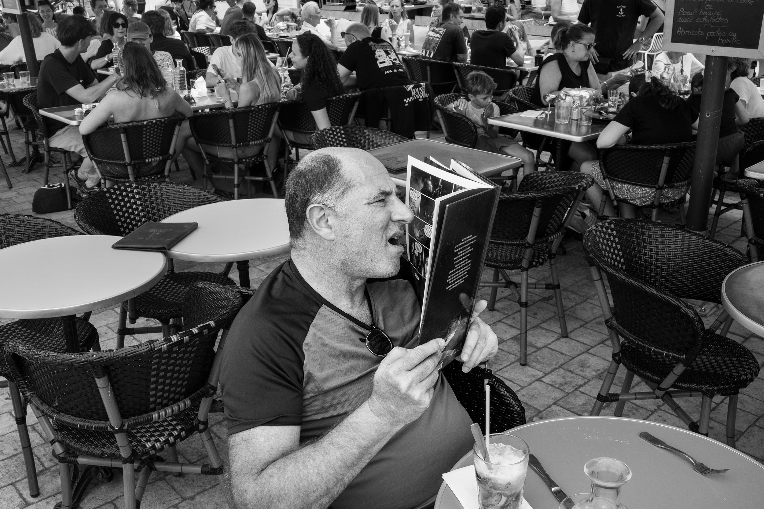 Im Jahr 2014 erkundete Richard mit seiner RX1 die belebten Strände und Strandpromenaden der französischen Ïle de Ré sowie die Straßen des benachbarten La Rochelle und schuf ein strukturiertes Porträt des Küstenlebens. Im Jahr 2025 tat er dasselbe, diesmal mit der RX1R III, wobei sein unverwechselbares monochromes Konzept eine Brücke zwischen dem Jahren und den Schauplätzen schlägt. „Für diese Art von persönlichen Bildern arbeite ich hauptsächlich mit Schwarzweiß“, erklärt er. „Ich schaffe ein Lebenswerk, also möchte ich ungern Neues versuchen, und Schwarzweiß passt zu der Welt, die ich zu ‚erschaffen‘ versuche. Das sind Bilder, bei denen das, was man sieht, eine gewisse Illusion oder Spannung hat. Es ist nicht alles so, wie es scheint. Ohne überflüssige Elemente wie Farben kann man diese Beziehungen und Bedeutungen klarer erkennen.“ „Auf der Ïle de Ré und in La Rochelle herrschte noch all die Lebendigkeit aus meiner Erinnerung“, sagt Richard. „Menschen, die Urlaub machten und arbeiteten, Eis aßen und tanzten. Bei der Aufnahme dieser Situationen bleibt der zentrale Reiz der RX1R III erhalten, aber natürlich wurde sie in vielerlei Hinsicht verbessert.“