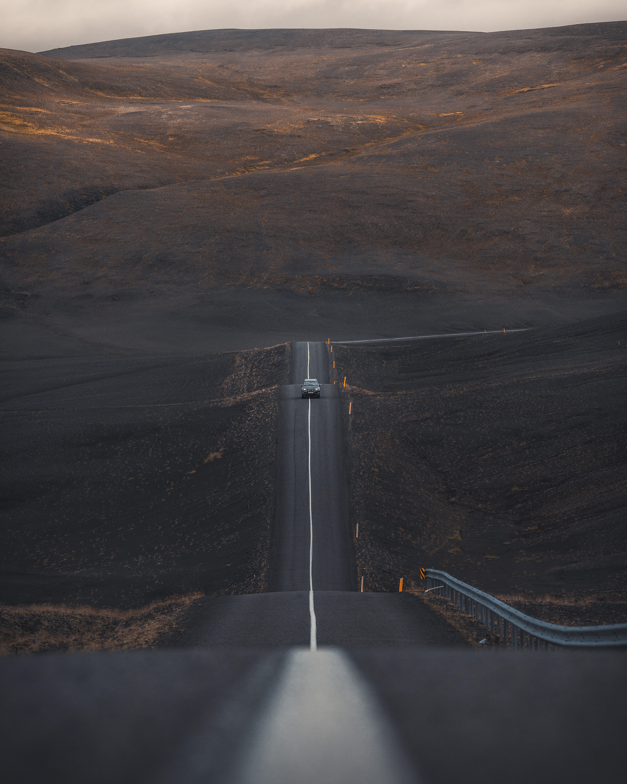 Wir lassen die Elfen und Trolle hinter uns und kehren zurück zur Zivilisation. Oder zumindest zu dem, was sich davon erahnen lässt, wenn sich Straßen kilometerlang schnurgerade durch die Landschaft ziehen. Im Aufeinandertreffen von Vergangenheit und Gegenwart entsteht ein besonderer Moment, den Marcel für uns eingefangen hat.