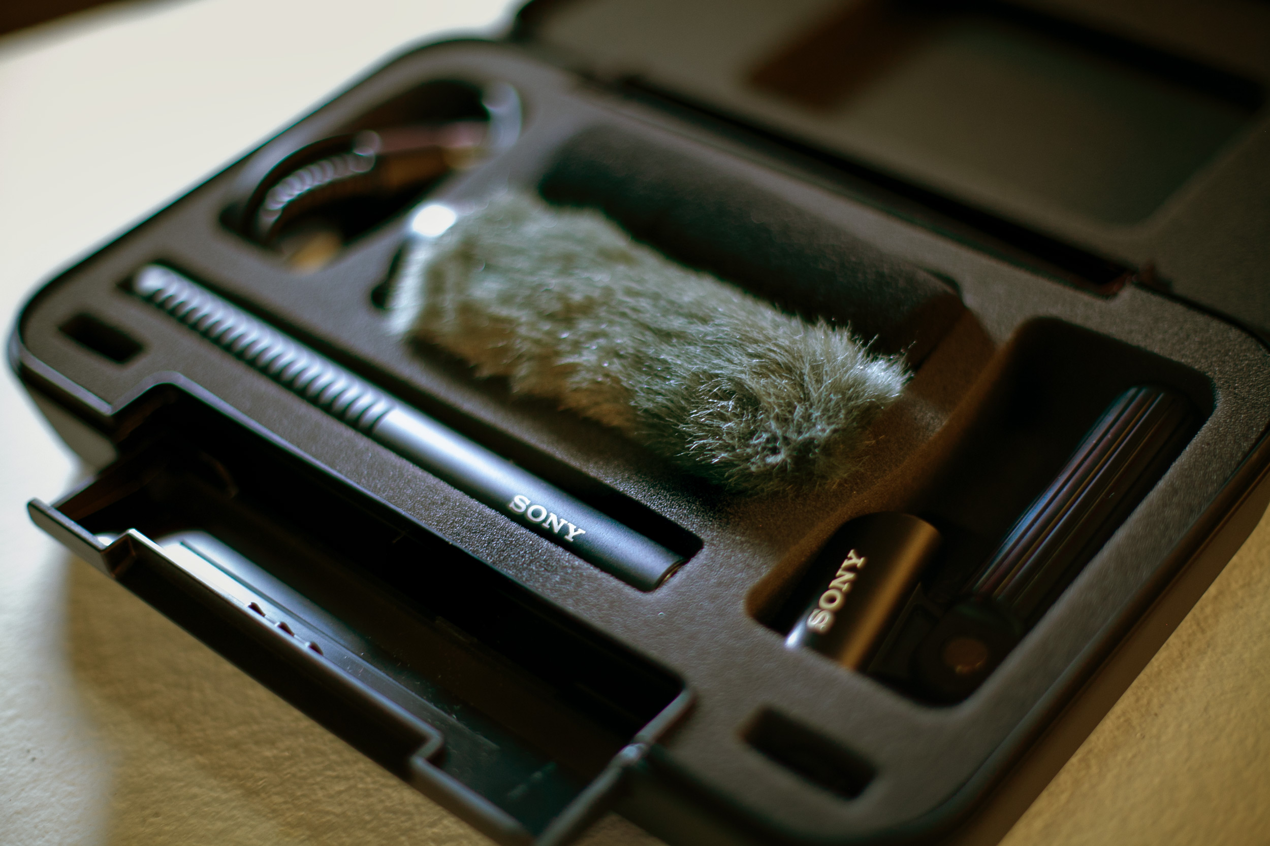 Auspacken und EinrichtenAls ich die Verpackung des Sony ECM-778 öffnete, fand ich sämtliches Zubehör übersichtlich organisiert, was eine schnelle und effiziente Einrichtung ermöglichte. Ich koppelte das Mikrofon mit meinen Sony 7506 Kopfhörern und dem Sony DWT-P01N Plug-in-Sender und war bereit, alles einzufangen, was der Tag für mich bereithielt.