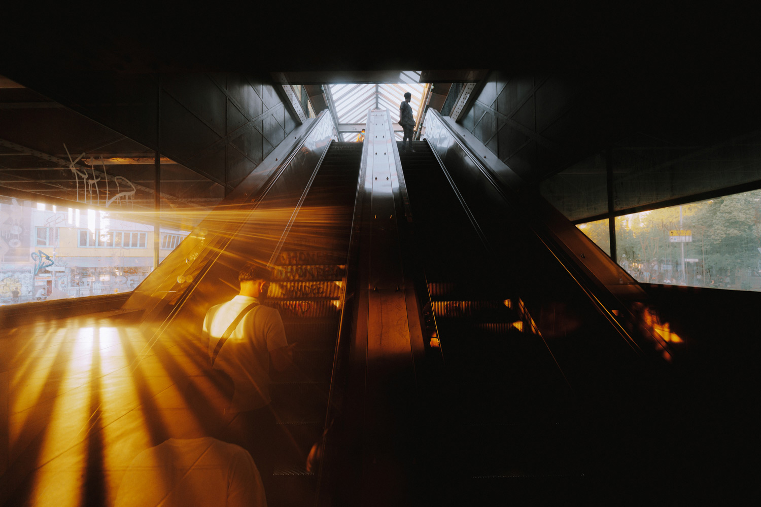 Ein Lieblingsmoment, den er mit der Alpha 7C II festgehalten hat, war ein Mann mit Hut, der halb im Schatten und halb im goldenen Abendlicht stand: „Ich habe ihn durch eine Fensterscheibe am U-Bahnhof entdeckt, das Licht war flüchtig, wenige Sekunden später war es weg. Genau das ist für mich Street Photography: aufmerksam bleiben, schnell reagieren, und manchmal Glück haben. Die Alpha 7C II war in dem Moment einfach bereit. Kein großes Setup, kein Zögern. Nur der Moment.“