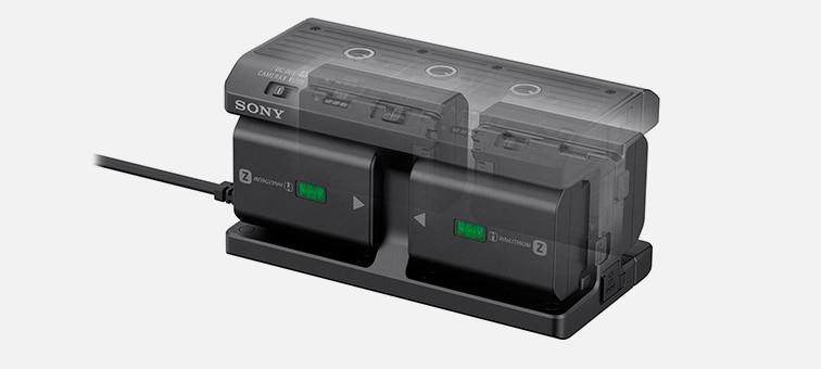 Dieser Akkuadapter kann vier Akkus der NP-FZ100 Z-Serie laden und unterstützt eine längere Betriebsdauer.