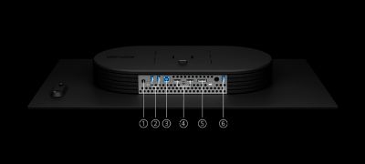 Für kompetitives Gaming gemacht. DP2.1 und HDMI2.1 unterstützen Signale mit hohen Bildwiederholraten für flüssigen, unterbrechungsfreien Spielespaß.[1] 1 Kopfhörerausgang (3,5-mm-Buchse) [2] 2 USB Typ-A (Downstream) [3] 1 USB Typ-B (Upstream) [4] 2 HDMI-Anschlüsse (Version 2.1) [5] 1 DisplayPort-Anschluss (Version 2.1 UHBR13.5) [6] 1 USB Typ-A (Software-Update)